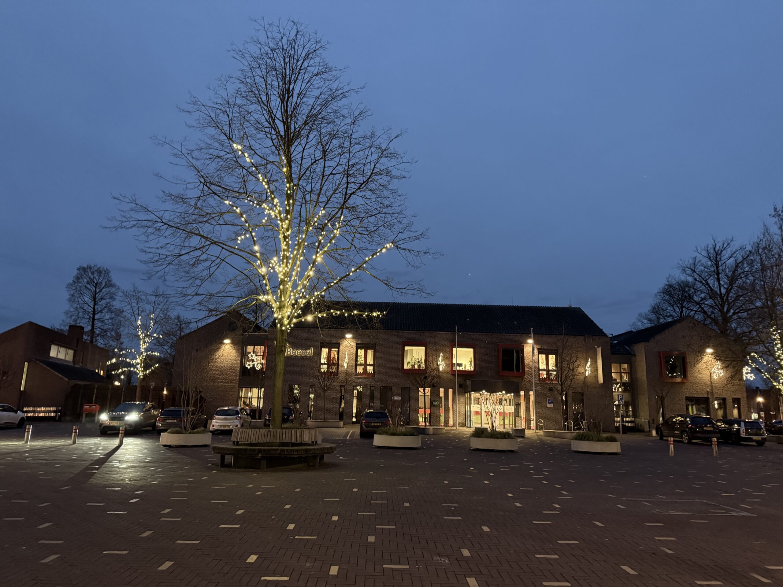 In 2018 werd de kerstsfeer verhoogd in Bösdael. Met woningstichting Nester was de afspraak gemaakt dat wij dit voor onze rekening zouden nemen. Belofte maakt schuld. De nogal kaal ogende verlichting in de vorm van een kerstboom werd vervangen door een echt exemplaar. Ook de lantaarnpalen die de entree vormen vanuit de Parklaan werden voorzien van passende lichtornamenten. De knutselgroep van Bösdael tekende voor het maken van de versieringen in de vorm van diverse pakjes. Zo konden zowel bewoners als de schoolgaande jeugd met hun ouders en leerkrachten genieten van de gezellige sfeer op het plein.